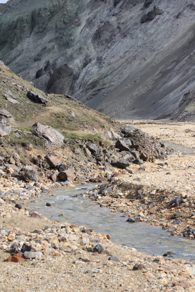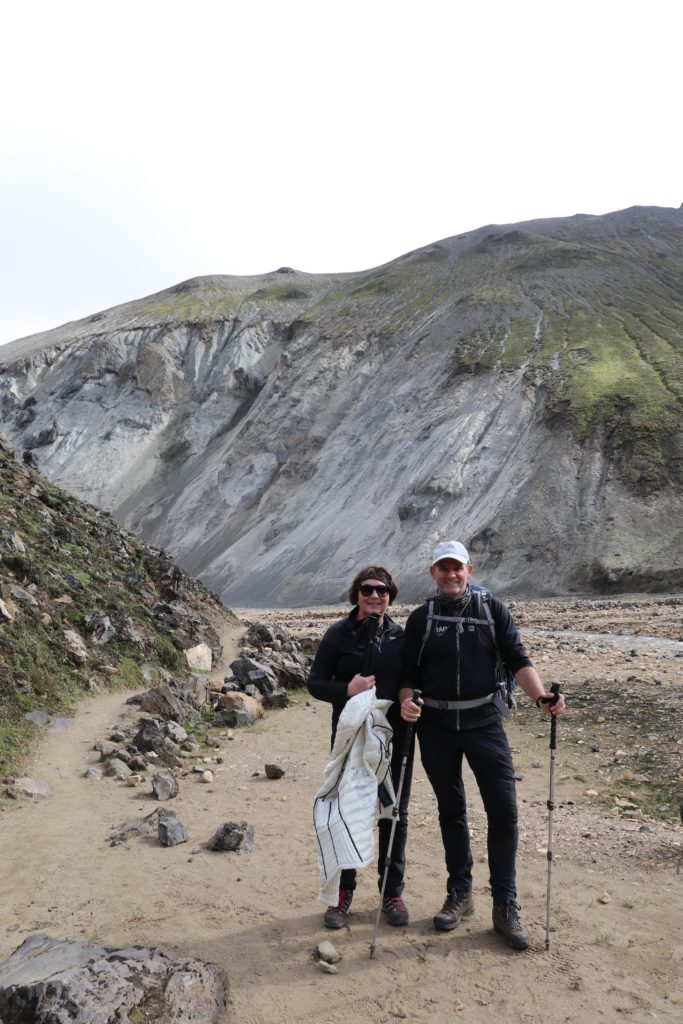 We hadden toen genoeg voedingsstoffen binnen om de wandeltocht te beginnen. Voor de zekerheid onze jassen aangedaan, maar die gingen al snel uit. Wat een prachtig gebied. Landmannalaugar is een dal in het binnenland, ten oosten van de beroemde vulkaan Hekla.