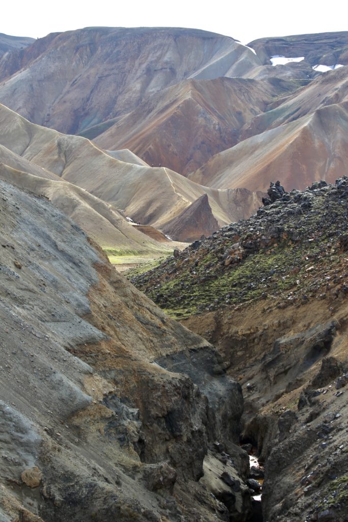 Het dal is met lava bedekt en wordt omringd door geel, bruin rood, groen en grijsblauwe bergen van rhyoliet (vulkanisch gesteente). Elke berg is anders van kleur. Ook hier weer geothermische activiteit in de grond wat weer veel verschillende kleuren oplevert.