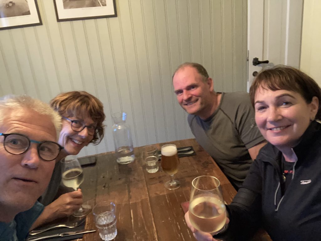 Tryggvaskáli is een oud historisch gebouw, gebouwd in 1890. De bouwers van de naastgelegen brug werden hier ondergebracht. Het zijn allemaal aparte kamers ingericht als restaurant. Heel intiem en heerlijk eten. Misschien werden we wel apart in een kamertje gezet omdat we stonken of vanwege onze charmante kleding:)
