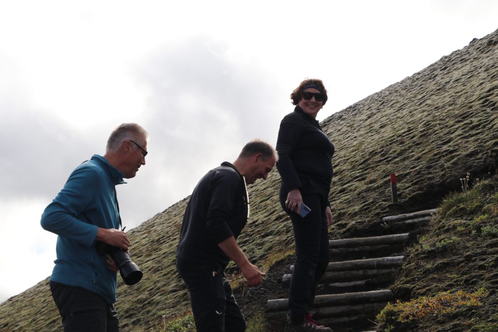 De tweede stop was de Stútur krater. Het was een steile klim maar zeker de moeite waard. Je kan de krater in het geheel rond lopen met mooie vergezichten.