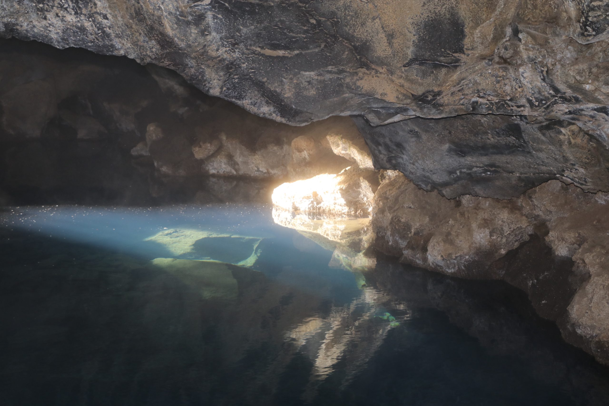 Op de weg ernaar toe zagen we Grjótagjá. Dit is een warm water grot bij Mývatn waarin vroeger werd gebaad. Tijdens de uitbarstingen tussen 1975 en 1984 steeg de temperatuur van het water plotseling naar zo’n 60 graden. Het water koelt al weer af maar het is nog te warm om er in te kunnen baden. Sommige mensen proberen het weer, maar ons niet gezien.